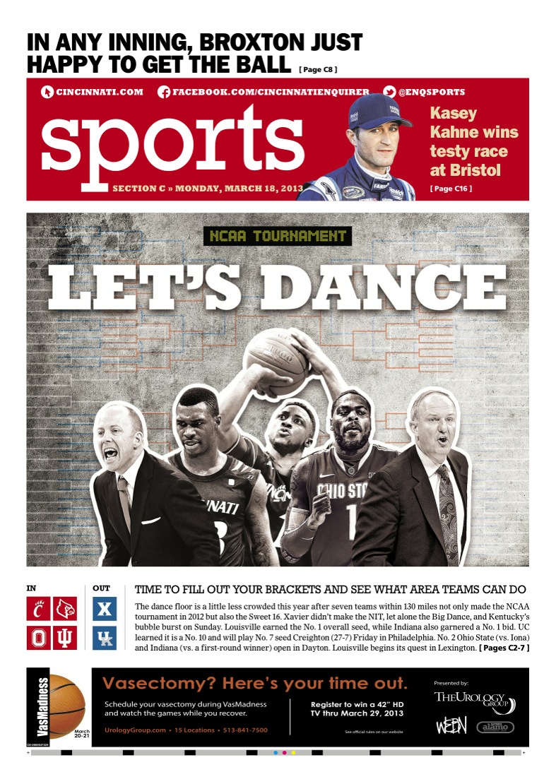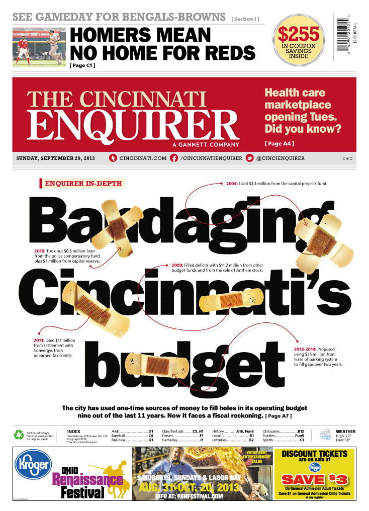 I redesigned the Cincinnati Enquirer from a broadsheet to a compact, which allowed for new, dynamic storytelling in print. I often met with the design, production and newsroom leadership to make sure our process maximized storytelling in the new format. The following are pages designed for the new format by a variety designers. Most of the designers featured are ones I directly managed.